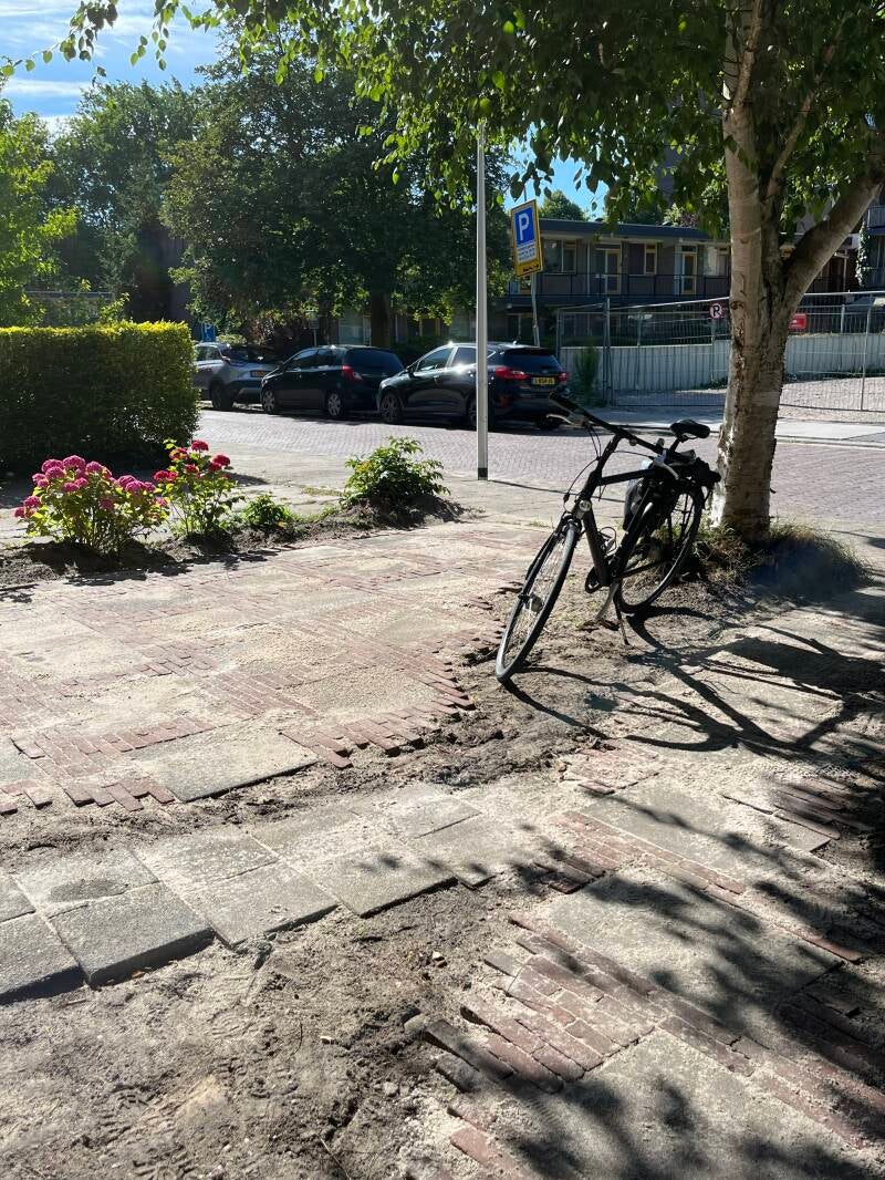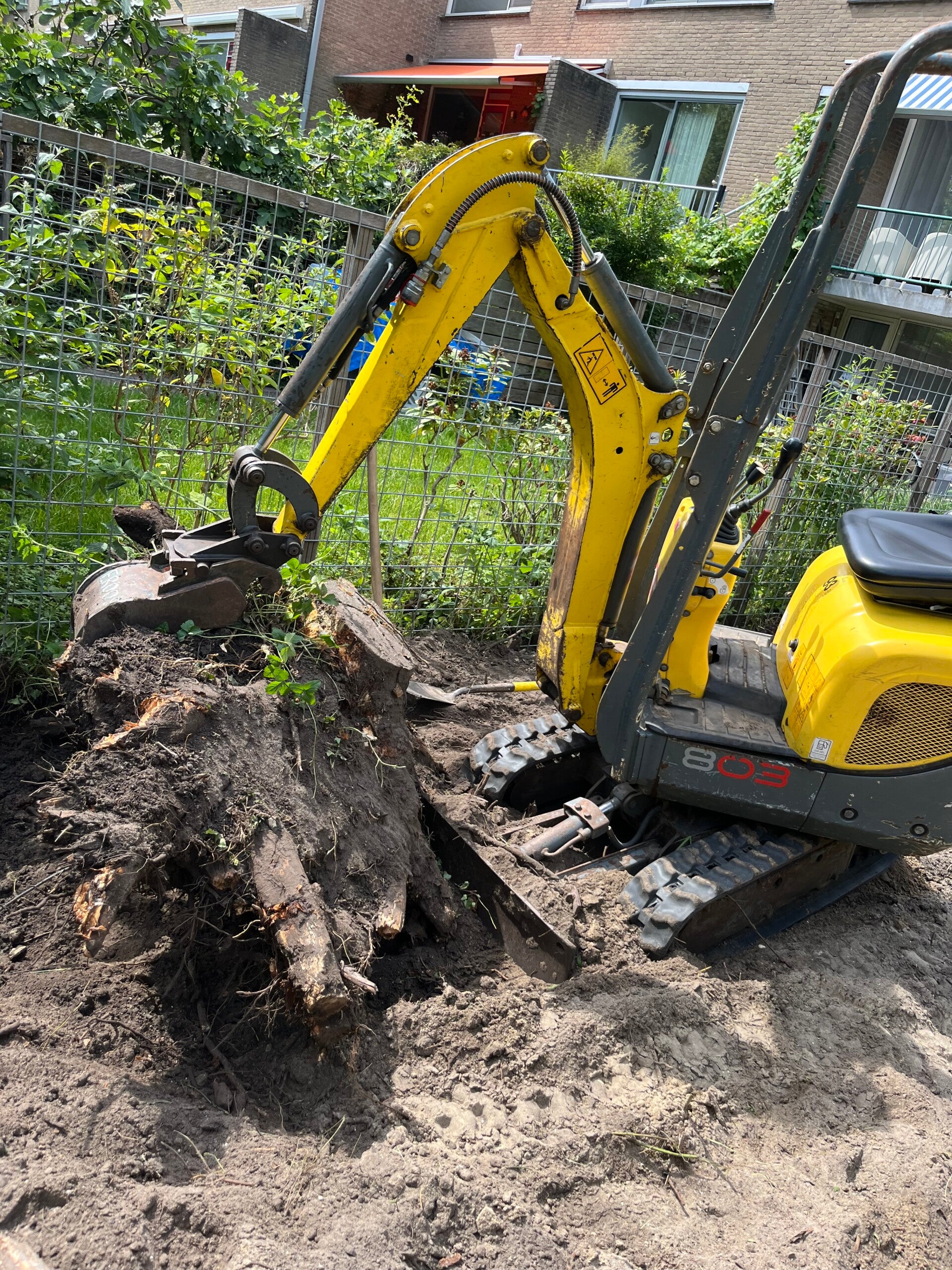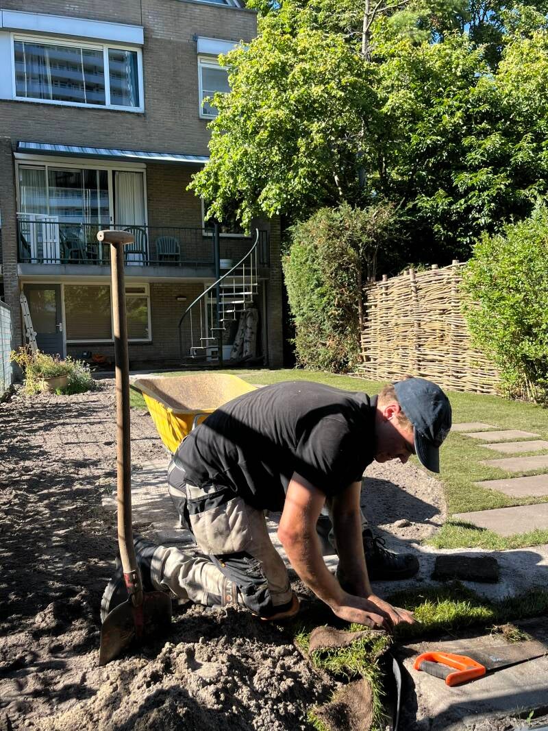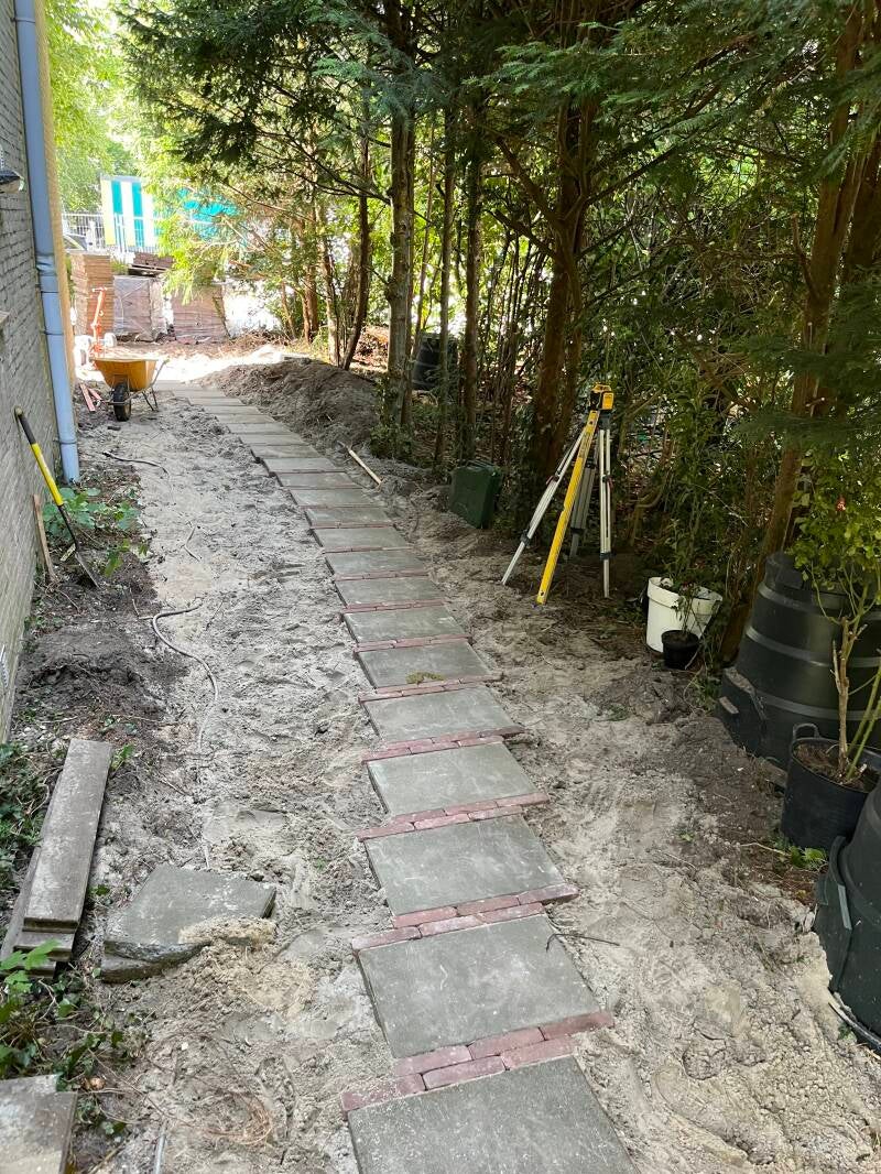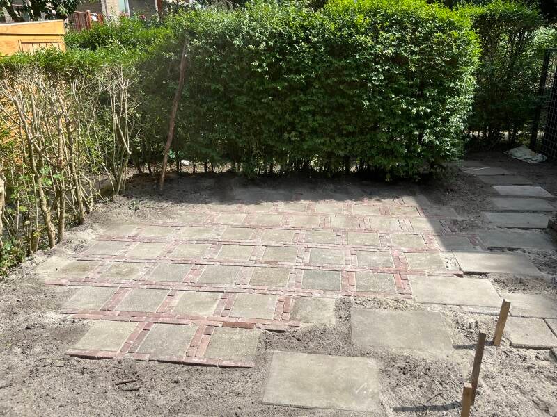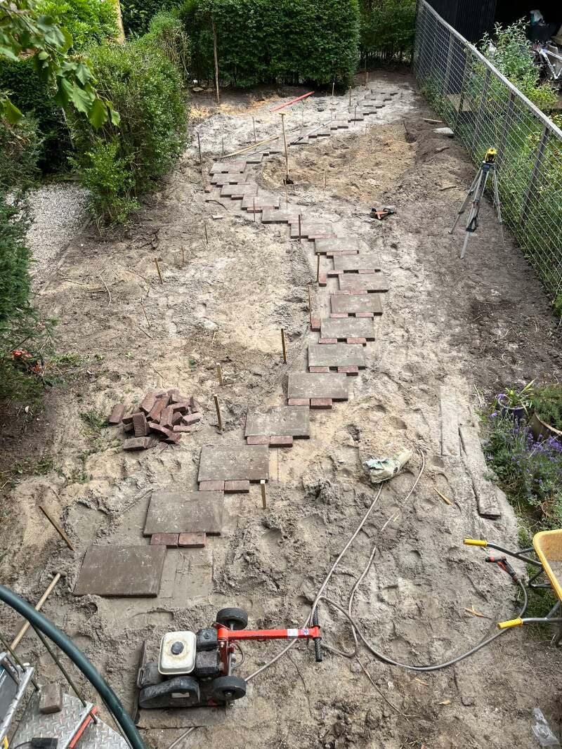 Daarna kon het grondwerk beginnen. Eerst is de tuin goed doorgespit met compost. Ook is er zand aangevoerd voor onder de bestrating.